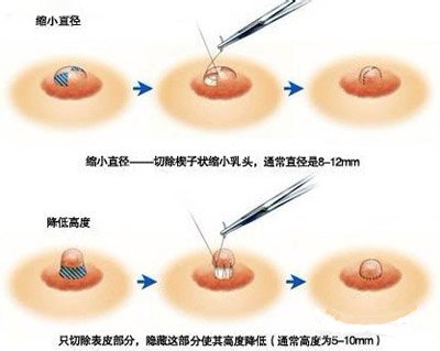 手术在局部麻醉下进行,切口在乳头基底圆周上或在乳头圆柱体的去除过多的乳头组织,手术局麻下进行,切口在乳头基底圆周上或在乳头圆柱体的去除过多的乳头组织,然后缝合,术后仅纱布覆盖7~8天后拆线。>>>这个方法要花多少钱?要不要住院?点击免费咨询
